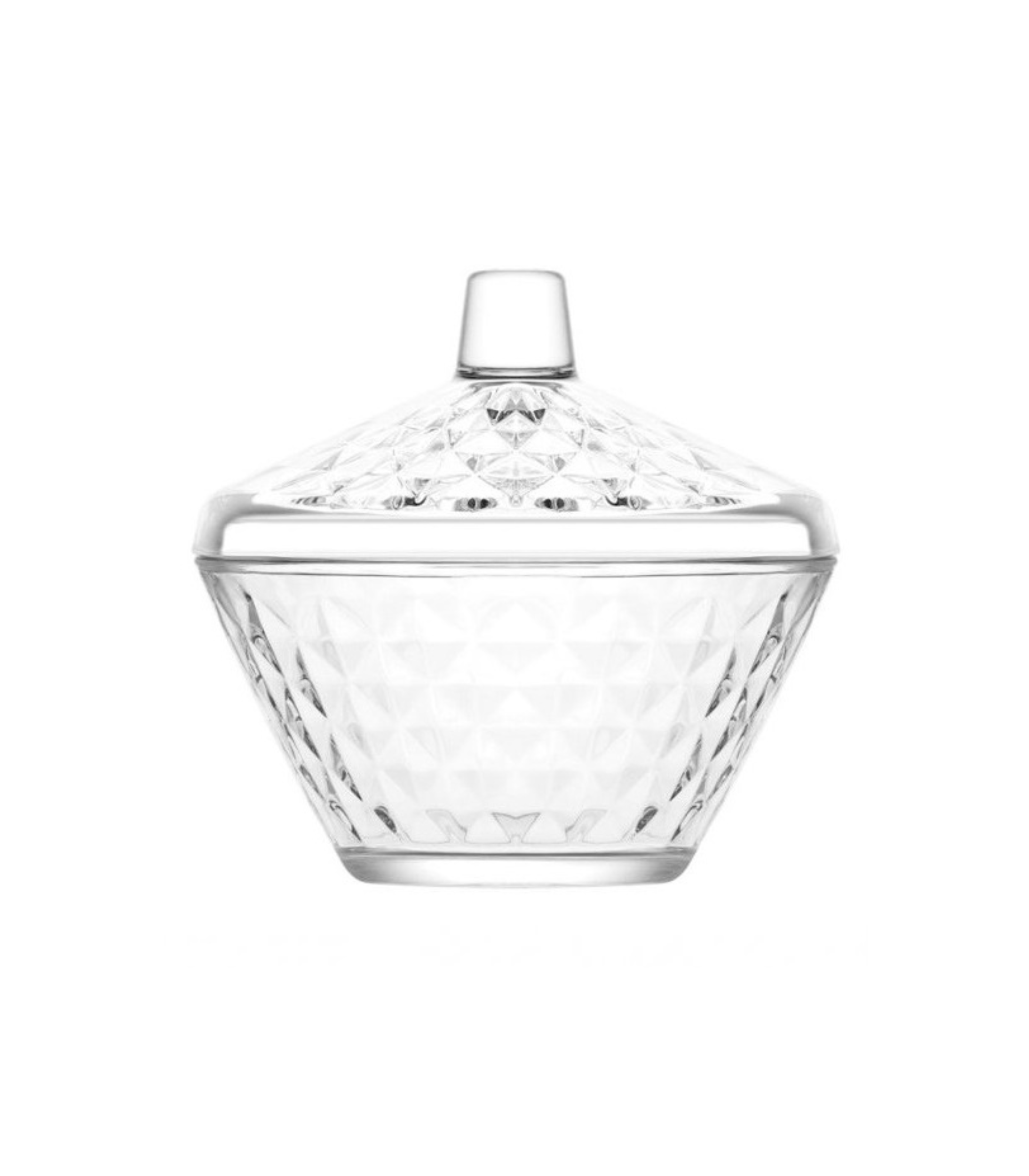 SUGAR BOWL: Clear Glass Candy Box with Lid Cookie Jar Covered Storage Dish SIZE: Volume: 11 1/4 oz or 300 cc. Height: 4.48 inches or 114 mm. Elegant diamond pattern. FOR: storing sugar, candy, nuts, chocolate, cookies and more. |