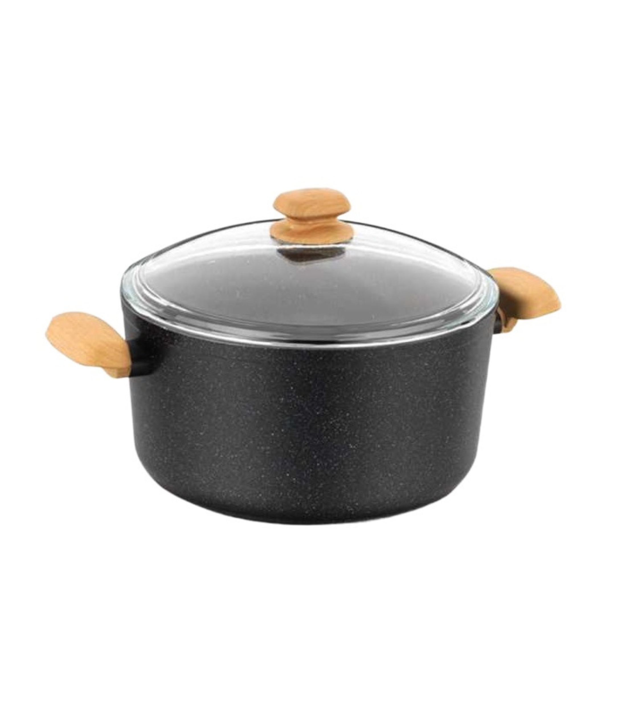 Volcanic looking PTFE coating with excellent non-stick property on internal surfaces. Size: 24*12.5 cm / 5.0 L Extra scratch resistance .