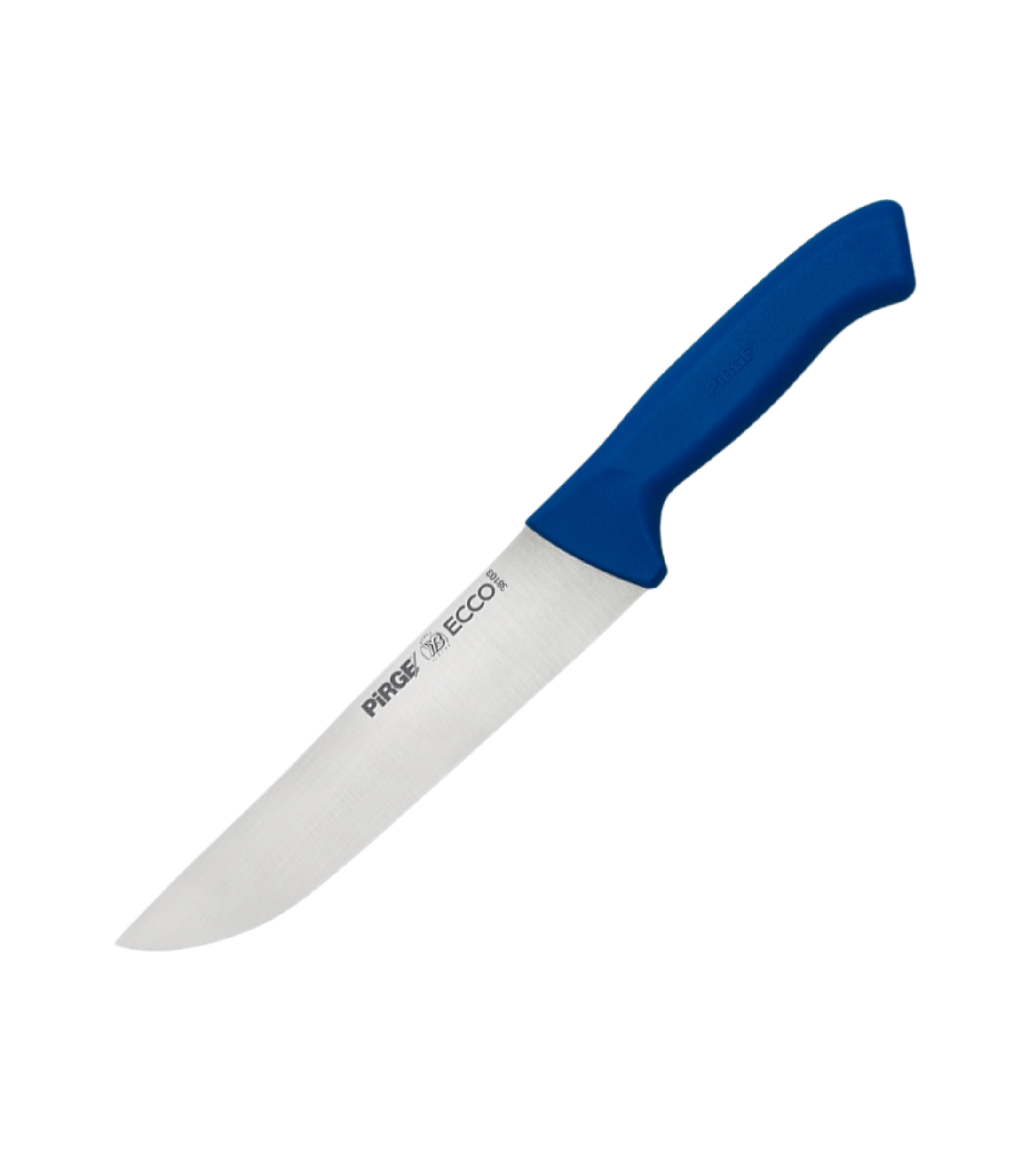 The PIRGE Ecco butcher knife: equipped with a finely crafted 40 mm x 190 mm x 2.5 mm blade for professional use. The slim handle not only adds a touch of elegance, but also ensures a comfortable and secure grip during precision cuts. Expand your butchering experience with this razor-sharp, German-made knife and make it an essential tool for chefs and butchers alike. German precision, unsurpassed quality: these butcher knives made in Germany are characterised by steel quality, which complies with the DIN 1.4116 standard. They are ice-hardened to a rugged hardness rating of 55HRC and provide exceptional durability and a razor-sharp edge for precise cutting in professional kitchens. Comfortable handling with basic comfort handle: the knives have a basic comfort handle made of PPC (polypropylene copolymer), which ensures a comfortable and secure grip. This ergonomic design ensures that chefs can safely handle the knives for extended periods of time, enhancing their overall kitchen experience. ROUNDED BACK CORNERS AND LONG ERL: These knives are designed for safety and have rounded back corners, minimizing the risk of accidents during use. The long tang provides balance and allows controlled and precise cutting movements in professional culinary environments. Razor sharp cutting for precise cutting: the knives have a razor-sharp cutting edge and are therefore indispensable for precise cutting tasks in butchers and professional kitchens. From trimming to cutting, these knives ensure efficient and precise cuts and reflect the tip of German craftsmanship.